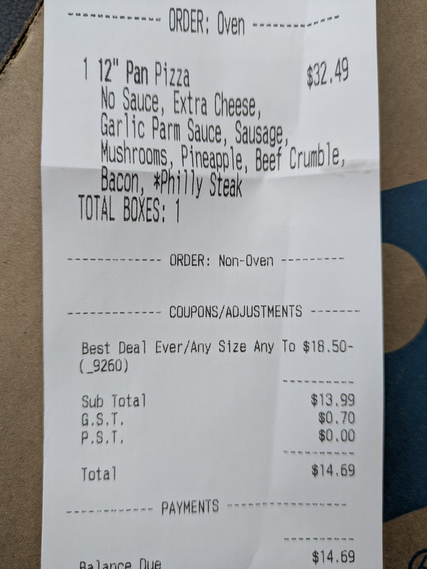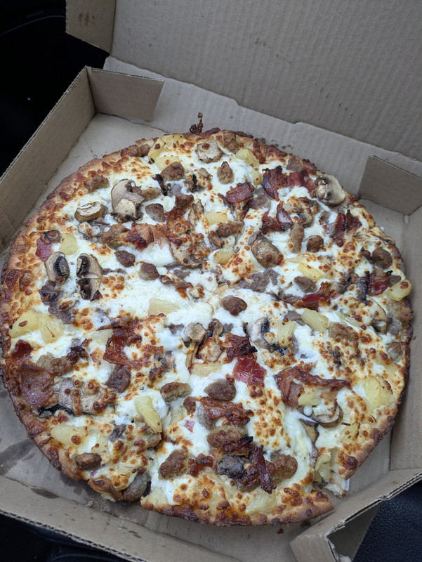 White man food ... Domino Pizza is having a $13.99 Any Pizza, Any topping special. Hint, get the 14" one. Don't know how long promo will be around for.