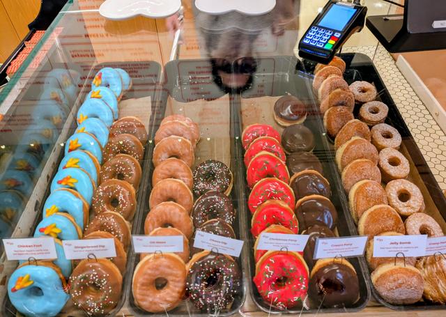 1. Cream Peony in North Shore - unassuming place, close to Lonsdale Quay, you could miss it easily, entrance is in a lane. Decent donuts, had their cruffin whatever, it was good but kinda surprised how small the selection of donuts were - cheese dip, chicken feet, Christmas peony, etc. The rest in their display looked like typical icing on top donuts which is meh. P.S. the reflection glass countertop is not me, it's the lady behind the counter ...  .
